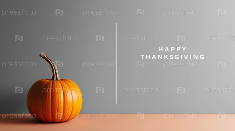 Оранжевая тыква на сером фоне с надписью «Счастливого Дня благодарения»