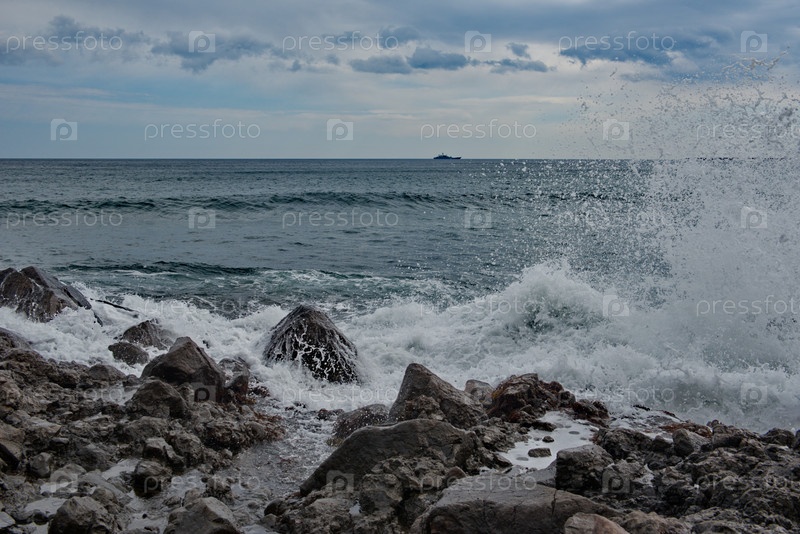 Россия. Дальний Восток. Курильские острова. Волны Тихого океана разбиваются о базальтовые скалы на берегу острова Итуруп