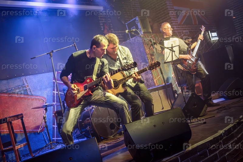 Группа выступает на сцене, рок-концерт в ночном клубе