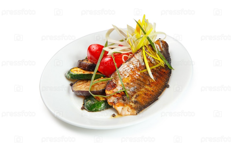 Острое филе скумбрии на гриле с лимоном и салатом из свежих овощей