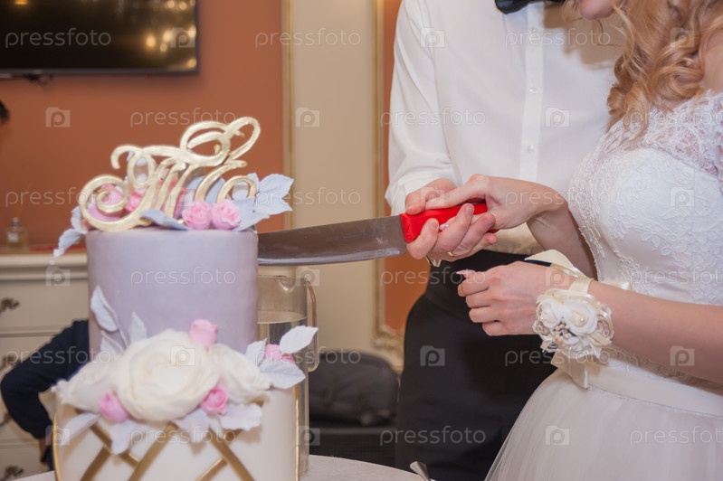 Жених и невеста вместе разрезали свадебный торт и заплели первую косу