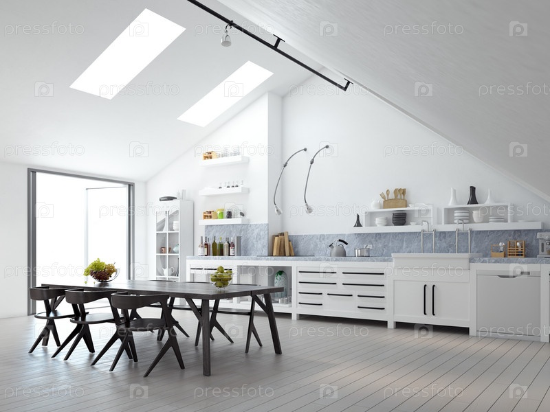 Минималистская белая кухня и естественное освещение