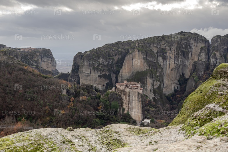 Православные монастыри Метеоры (Греция) на скалах в зимний день