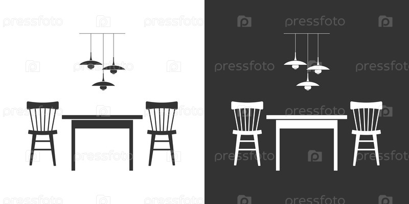 Черная и белая иконка интерьера с обеденным столом и стульями в плоском стиле