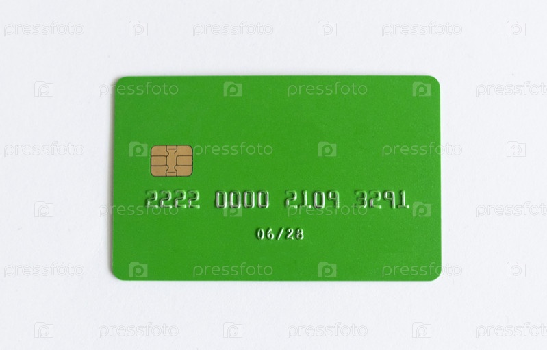 Снимок зеленой кредитной карты на белом фоне. Бизнес