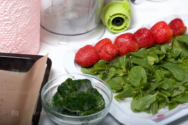 Рулет со шпинатом и мятой. С начинкой из клубники. Ингредиенты для приготовления