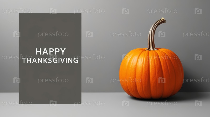 Оранжевая тыква на сером фоне с надписью «Счастливого Дня благодарения»