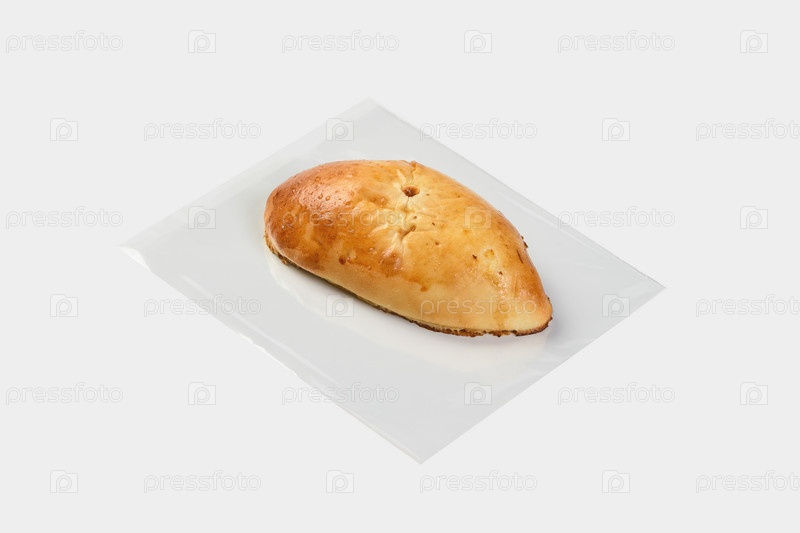Овальная сладкая булочка с фруктовой начинкой на светлом фоне