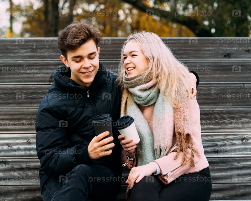 Концепция подростковой любви. Симпатичный брюнет ??? молодая блондинка
