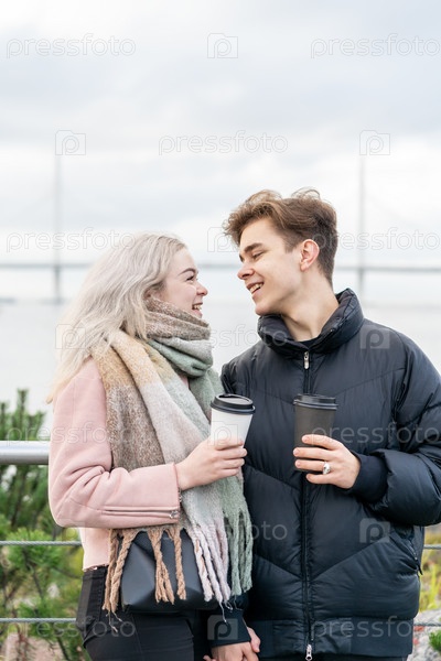 Концепция подростковой любви. Симпатичный брюнет парень фтв молодая блондинка девушка
