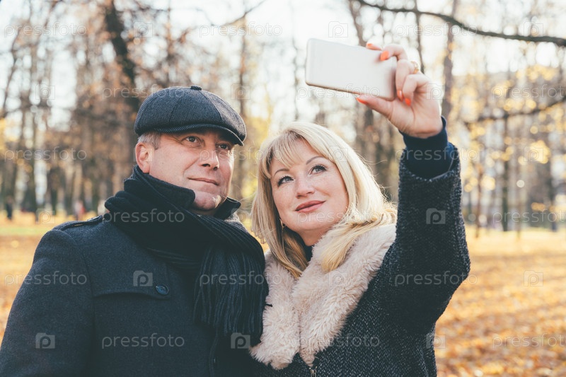 Счастливая зрелая блондинка и красивый брюнет среднего возраста