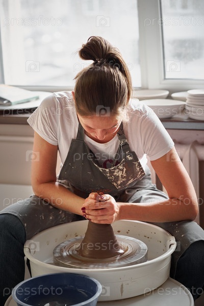 Женщина фрилансер, бизнес, хобби. Женщина делает керамическую посуду