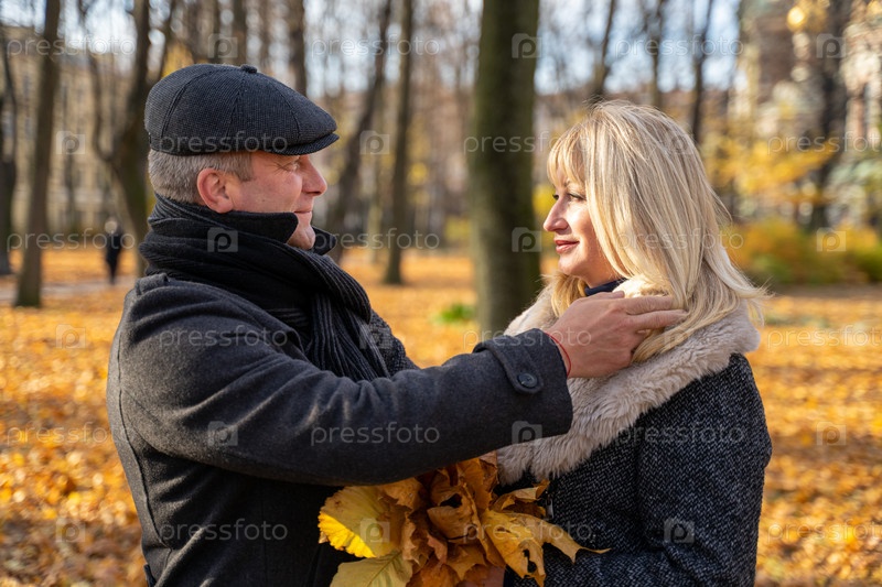 Счастливая зрелая блондинка и красивый брюнет среднего возраста