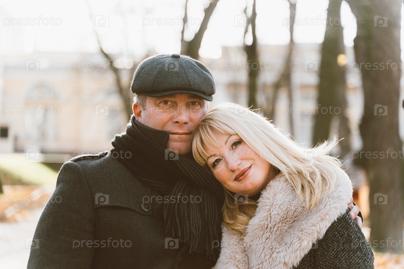 Счастливая зрелая блондинка и красивый брюнет среднего возраста