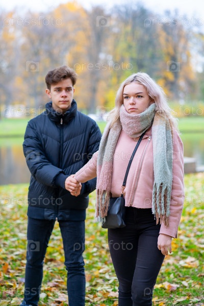 Концепция подростковой любви. Симпатичный брюнет парень фтв молодая блондинка девушка