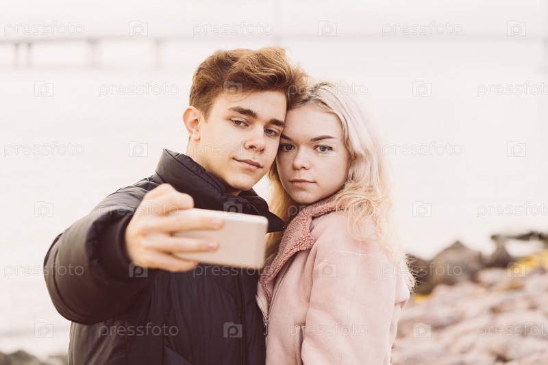 Концепция подростковой любви. Симпатичный брюнет ??? молодая блондинка