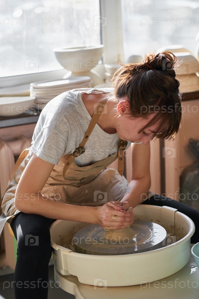 Женщина фрилансер, бизнес, хобби. Женщина делает керамическую посуду