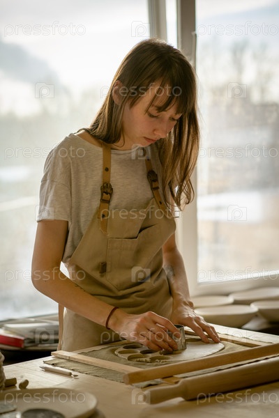 Женщина фрилансер, бизнес, хобби. Женщина делает керамическую посуду