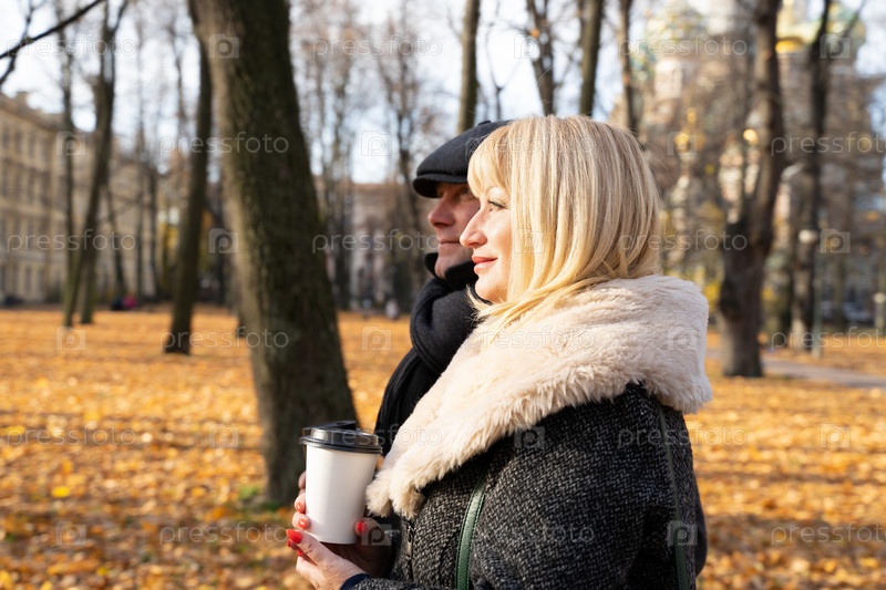 Счастливая зрелая блондинка и красивый брюнет среднего возраста