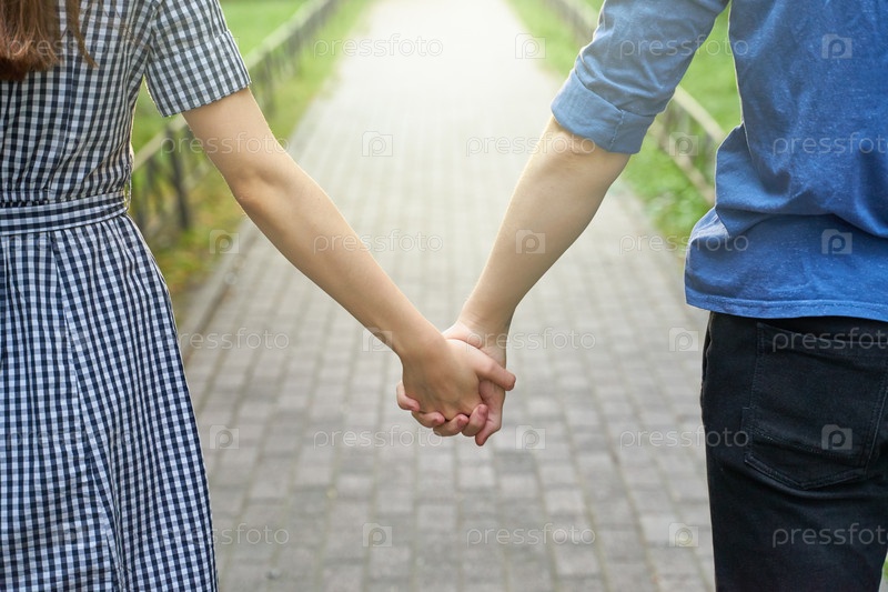 Пара держится за руки во время прогулки в парке крупным планом