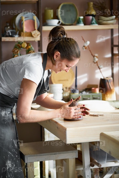 Женщина фрилансер, бизнес, хобби. Женщина делает керамическую посуду