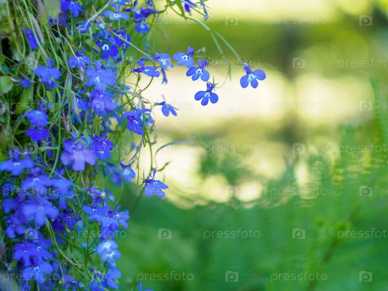 Маленькие синие цветы на тонированном мягком желтом и зеленом фоне. Нежный светлый цветочный фон с пустым местом для текста