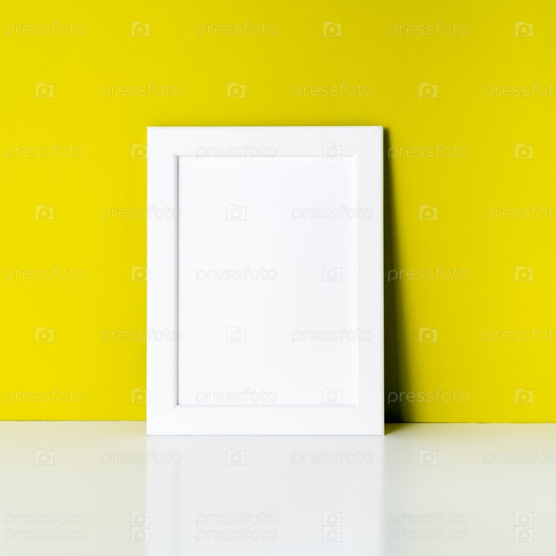Макет рамки на ярко-желтой бумажной стене