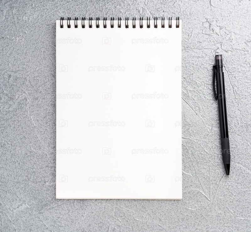 Чистый лист блокнота со спиралью на нейтральном сером текстурированном серебристом металлическом фоне