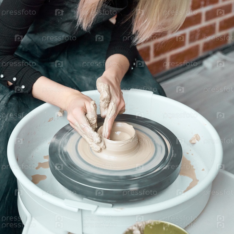 Женщина делает керамическую посуду на гончарном круге, руки крупным планом, создание керамической посуды. Ручная работа, ремесло, ручной труд, бизнес. Зарабатывайте дополнительные деньги, превращая хобби в деньги и превращая страсть в работу