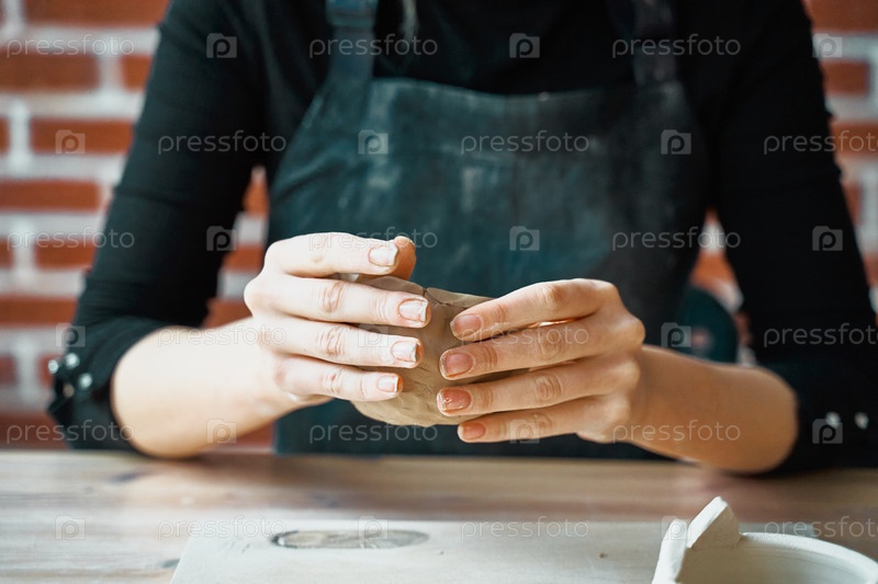 Женщина делает керамику, руки крупным планом, размытый фон, фокус на гончарах, ладони с керамикой. Концепция для женщины в фрилансе, бизнесе, хобби. Превращает хобби в деньги, а страсть в работу