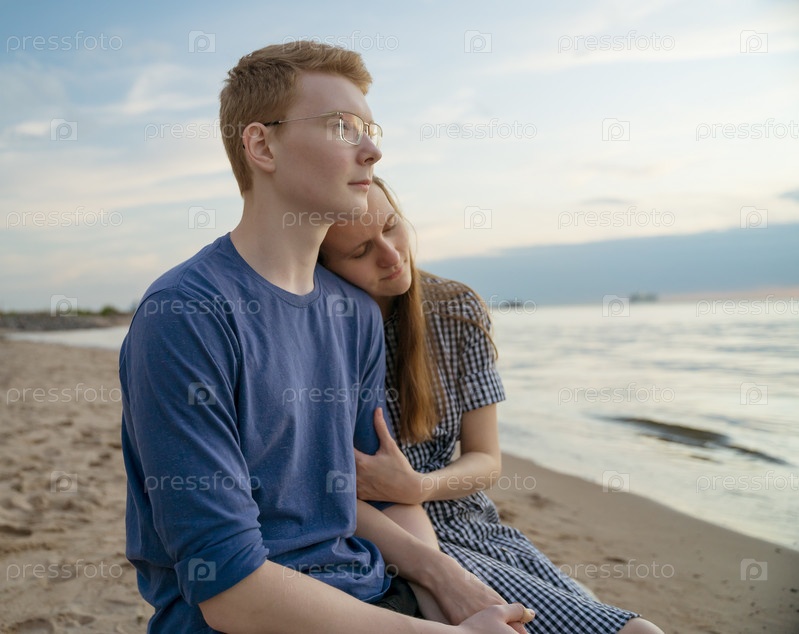 Девочка и мальчик сидят, девушка держит парня за руку, концепция подростковой любви