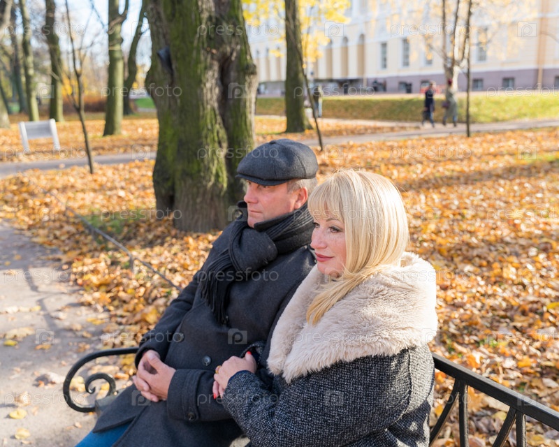 Счастливая зрелая блондинка и красивый брюнет среднего возраста
