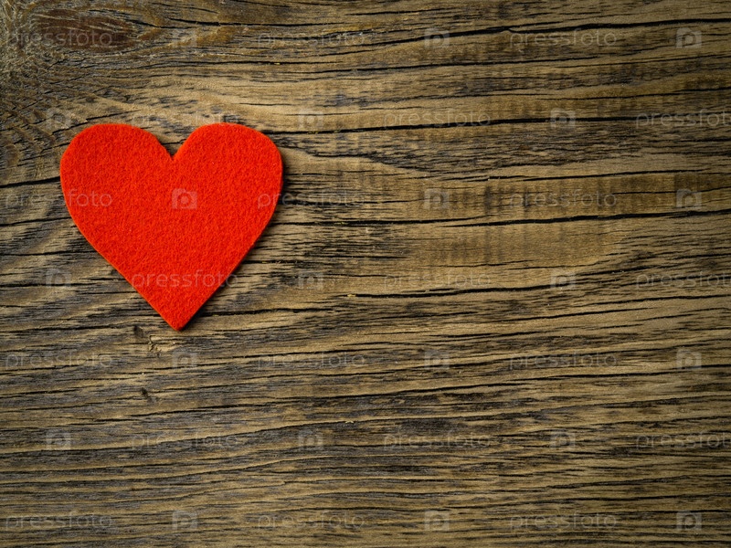 Одно ярко-красное сердце на темном винтажном фоне текстуры старого дерева, символ Дня святого Валентина, место для текста, вид сверху