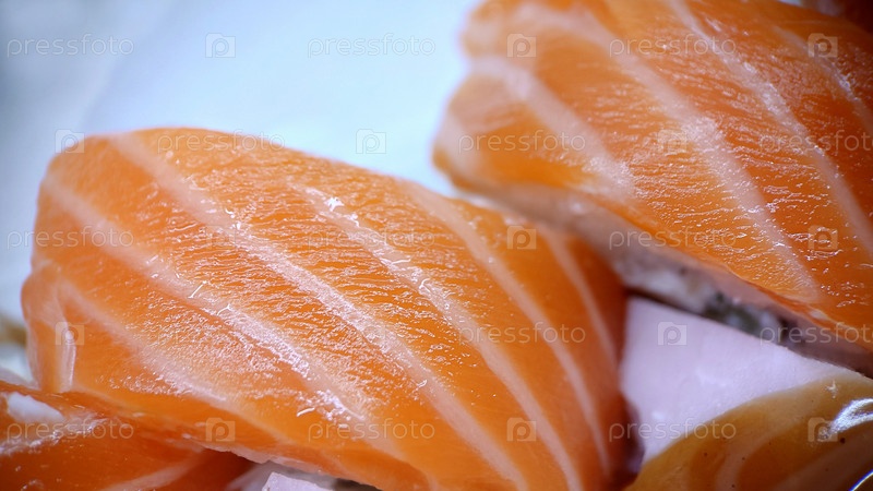 Суши роллы из красной рыбы на светлом фоне