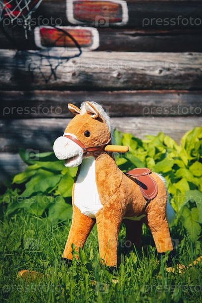 Летом на улице стоит качалка для детей в виде лошади