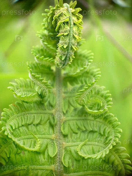 Макро.Крупный план. Скрученный развивающийся лист молодого папоротника.Текстура или фон