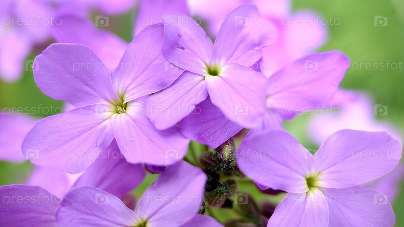 Макрофотография. Текстура или фон. Цветы сиреневого флокса с зеленой серединкой крупным планом