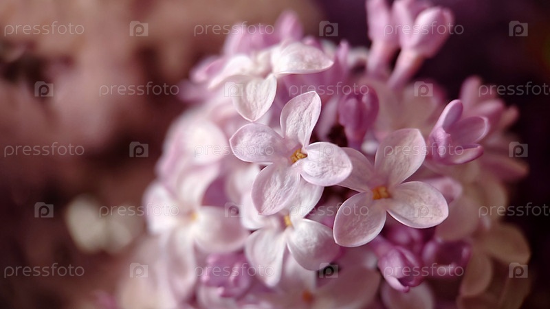 Бледно-сиреневые лепестки цветущей сирени крупным планом