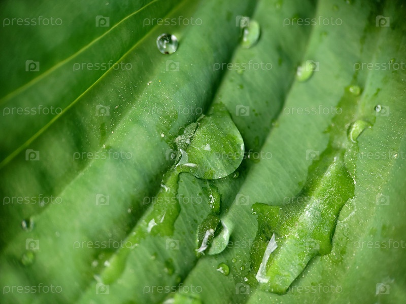 Фоновая текстура капель дождя на зеленом листе на открытом воздухе.Макрофотография.Текстура или фон