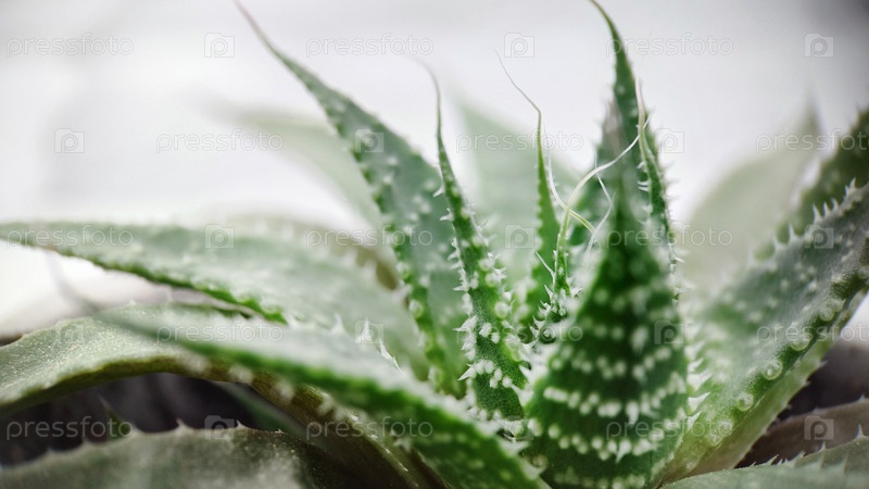 Макрофотография. Вечнозеленое многолетнее растение алоэ крупным планом в горшке. Текстура или фон. Избирательный фокус