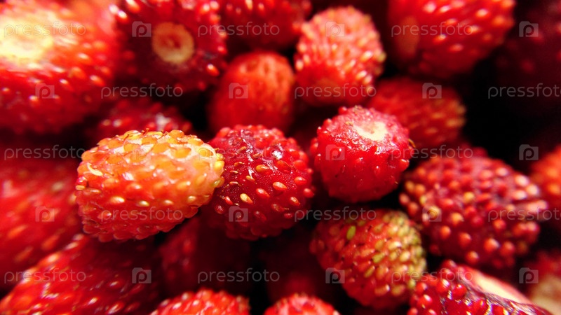 Избирательный фокус красной лесной земляники крупным планом.Макросъемка.Текстура или фон.Избирательный фокус