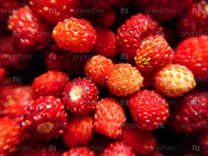 Избирательный фокус на красную лесную землянику, вид сверху