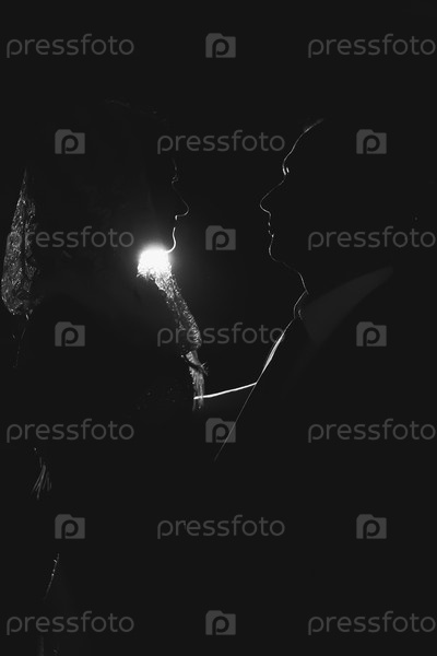 На свадьбе черный силуэт жениха и невесты