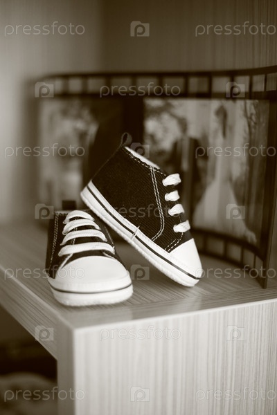 Монохромное фото обуви для маленьких детей