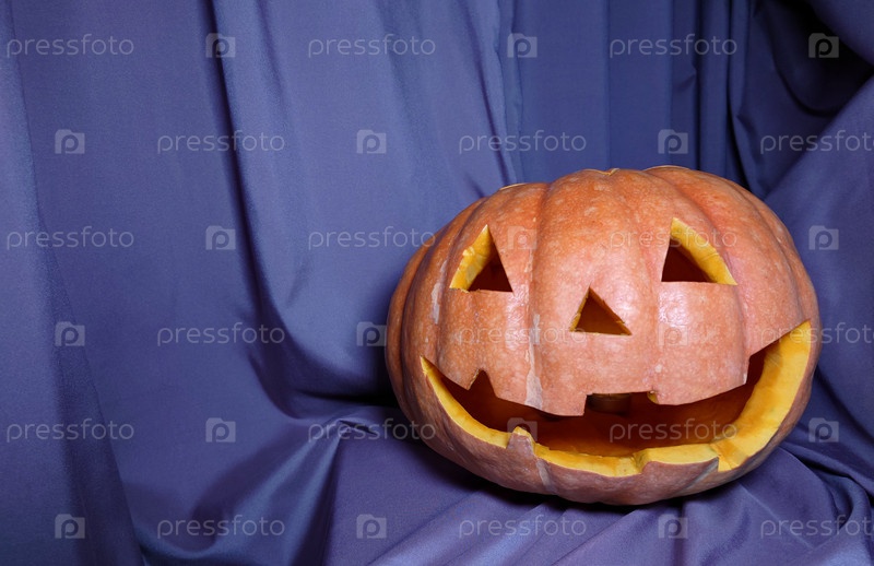 Веселая улыбающаяся тыква на Хэллоуин на синем фоне