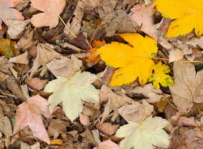 Сухие кленовые листья в осенний день крупным планом