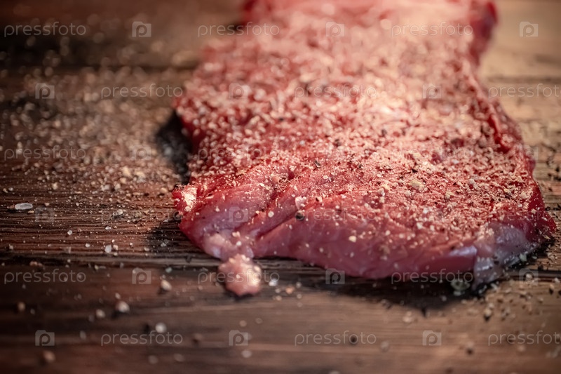 Смесь перцев и специй на сыром мясном стейке