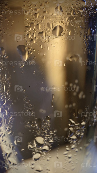 Капли воды на стеклянной поверхности крупным планом