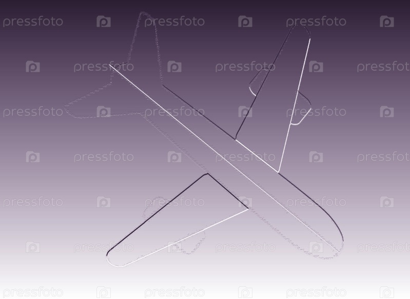 Абстрактный силуэт прозрачного самолета на серо-голубом фоне крупным планом