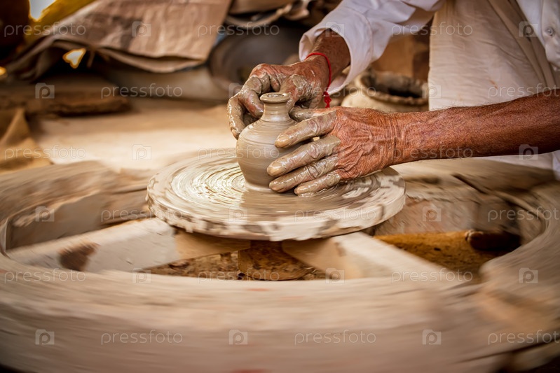 Гончар за работой изготавливает керамическую посуду. Индия, Раджастхан